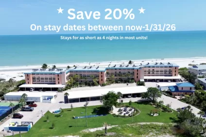 Ocean's Reach is unique for offering ALL BEACHFRONT accommodations, where incredible views of the Gulf of Mexico start right from your very own living room.  Beautiful 1- and 2-bedroom condos feature private lanais, fully-appointed kitchens and all the comforts of home, including in-room washer and dryer. Non smoking. Family friendly. Complex is exquisitely landscaped, including "Andy's Grove," a lovely outdoor dining area with five gas grills.  Heated gulfside pool.  Tennis, pickleball, basketball, shuffleboard and corn toss.  Shelling station and butterfly garden.  Covered carports.  Complimentary high-speed internet.  Free replenishment supplies.  First "Green Lodge" on Sanibel Island.  Secluded location, convenient to everything but off the beaten path.  Best of all, "just 19 steps" to your very own world-class beach, featuring amazing shelling, remarkable wildlife and spectacular sunsets!