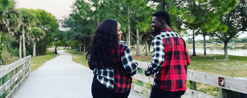 Man Woman Couple Love Boardwalk Smile Lakes Park