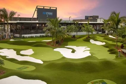 PopStroke is a family-friendly golf and outdoor dining experience featuring two 18-hole Tiger Woods-designed putting courses, a full menu. Our two 18-hole putting courses designed by Tiger Woods and TGR Design will test your ability to not only dominate the course but also your competition. We know the key to your heart is through your tastebuds. Our team has created a menu with our spin on everyone’s favorites. You can eat in our full service restaurant and bar or we can deliver it right to you on the course.